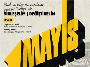 Emek ve bilimle kurulacak yeni bir Türkiye için 1 Mayıs’ta alanlara çıkıyoruz. İzmir Mimarlık Merkezi önünde 11.00’de toplanacak olan mühendis, mimar ve şehir plancıları, saat 13.00’te Gündoğdu Meydanı’ndaki mitinge TMMOB İzmir İl Koordinasyon Kurulu pankartıyla katılacak. Tüm üyelerimiz savaşa ve sömürüye karşı; adalet, özgürlük ve eşitlik için 1 Mayıs alanlarına davet ediyoruz.
