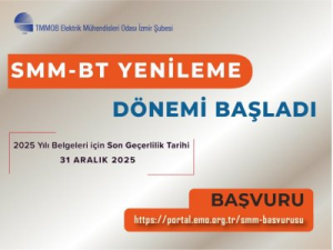 Serbest Müşavir Mühendis olarak çalışan EMO üyeleri için SMM Büro Tescil Belgesi yenileme başvuruları 17 Kasım 2025 tarihinde başladı. Yenileme işlemlerin 28 Şubat 2026 tarihine kadar gerçekleştirileceği ve bu tarihten sonra yapılacak başvurular ilk çıkartma kapsamında değerlendirilecektir. 2025 yılı belgelerinin 1 Ocak 2026 tarihi itibariyle geçerliliklerini yitirecek olması nedeniyle üyelerimizin işlemlerini bir önce tamamlamaları tavsiye edilir.
