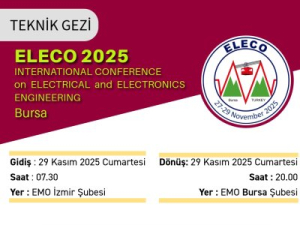 Elektrik Mühendisleri Odası (EMO) adına EMO Bursa Şubesi’nin düzenlediği Uluslararası Elektrik-Elektronik ve Biyomedikal Mühendisliği Konferansı (ELECO 2025) 27-28-29 Kasım 2025 tarihlerinde düzenleniyor. EMO İzmir Şubesi ise 29 Kasım 2025 tarihinde ELECO 2025 teknik gezi düzenleyecektir. Katılmak isteyen üyelerimiz yazımızın devamında kayıt yaptırabilirler.