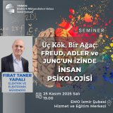 Elektrik Mühendisleri Odası (EMO) İzmir Şubesi, 25 Kasım 2025 Salı günü Hizmet ve Eğitim Merkezi’nde saat 19.00’da Elektrik ve Elektronik Mühendisi Fırat Taner Yapalı`nın sunumuyla `Üç Kök, Bir Ağaç: Freud, Adler ve Jung’un İzinde İnsan Psikolojisi` başlıklı seminer düzenleyecektir. |