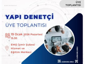 Elektrik Mühendisleri Odası (EMO) İzmir Şubesi, 19 Ocak 2026 Pazartesi günü Yapı Denetçi Üye Toplantısı düzenleyecektir. EMO İzmir Şubesi Hizmet ve Eğitim Merkezi`nde saat 15.30`da başlayacak toplantıya alanda hizmet üreten tüm üyelerimiz davetlidir.