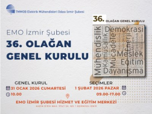 TMMOB Elektrik Mühendisleri Odası İzmir Şubesi`nin 36. Olağan Genel Kurulu Toplantısı, çoğunluklu olarak 24 Ocak 2026 tarihinde düzenlenecektir. Bu toplantıda çoğunluk sağlanamaması durumunda, Genel Kurul çoğunluk aranmaksızın 31 Ocak 2026 Cumartesi günü saat 10.00`da başlayacak olup aynı gün sona erecektir. Seçimler ise 1 Şubat 2026Pazar günü 09.00-17.00 saatleri arasında yapılacaktır. Genel Kurulu toplantısı ve seçimler, EMO İzmir Şubesi Hizmet ve...